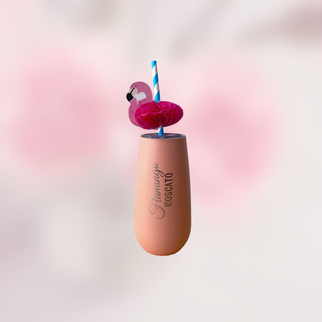 Moscato Tumbler and 2x Flamingo Straws