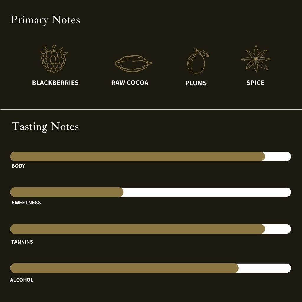 This 2021 Shiraz showcases a striking deep crimson color, accompanied by captivating aromas of blackberries, raw cocoa, and ripe plums. On the palate, you'll find an exquisite blend of red fruits, complemented by hints of spice and seamlessly integrated oak. The wine is structured with fine, velvety tannins that persist, offering a harmonious balance and exceptional length on the finish.